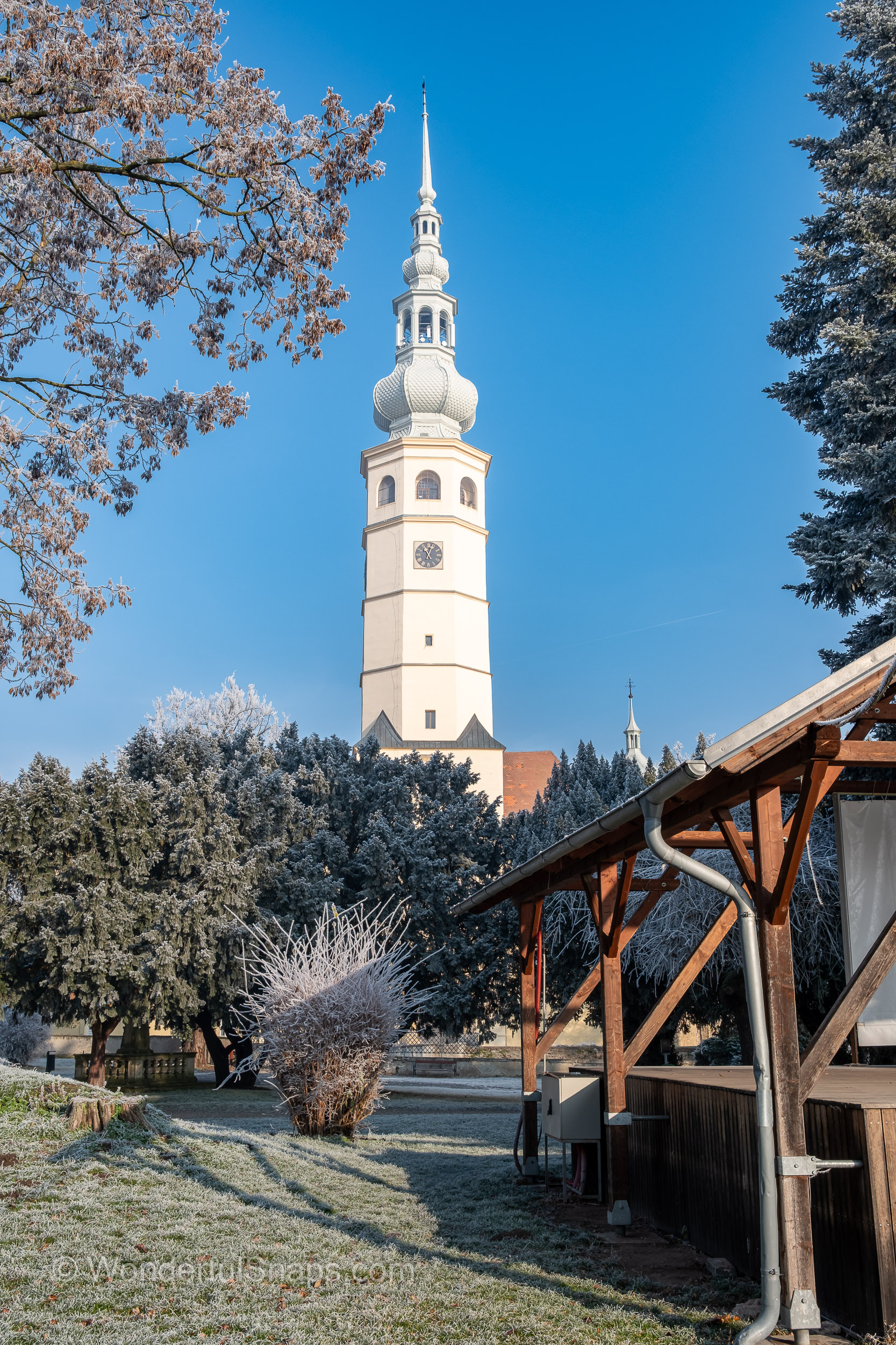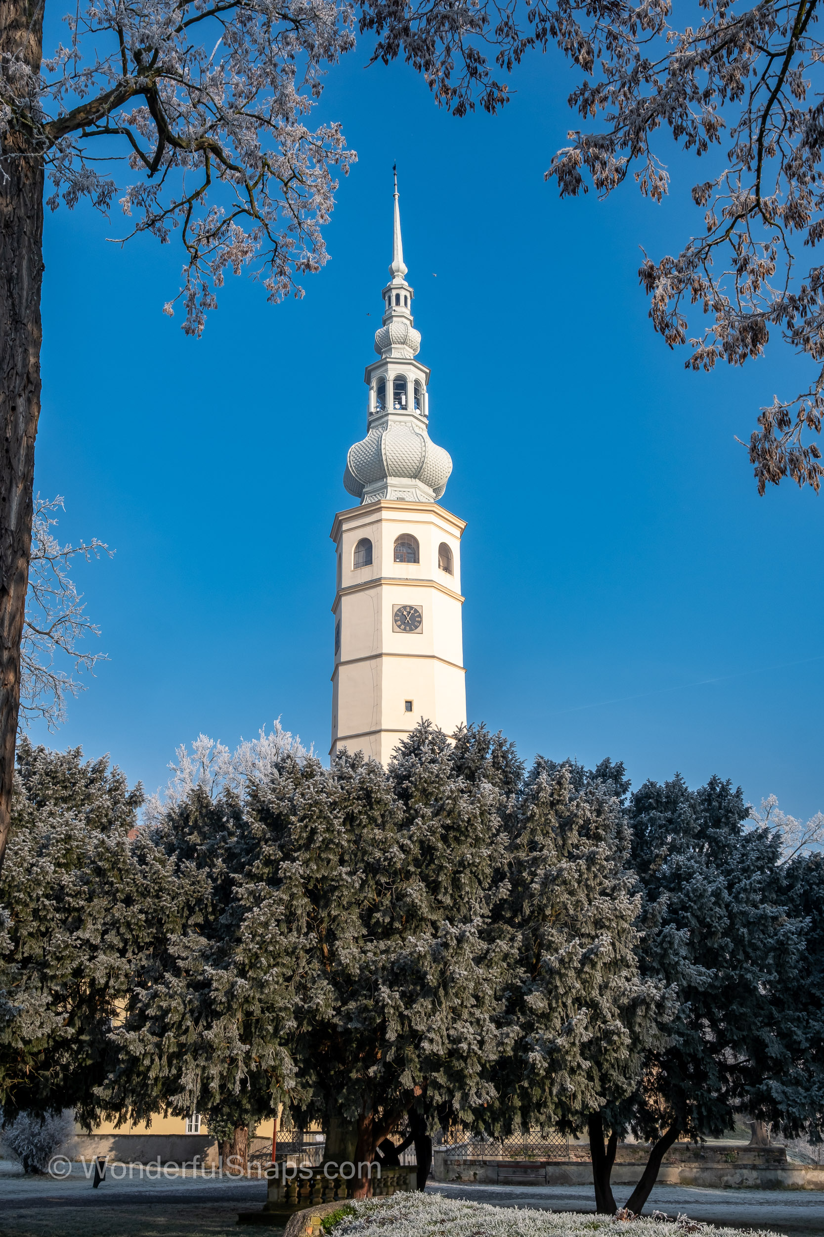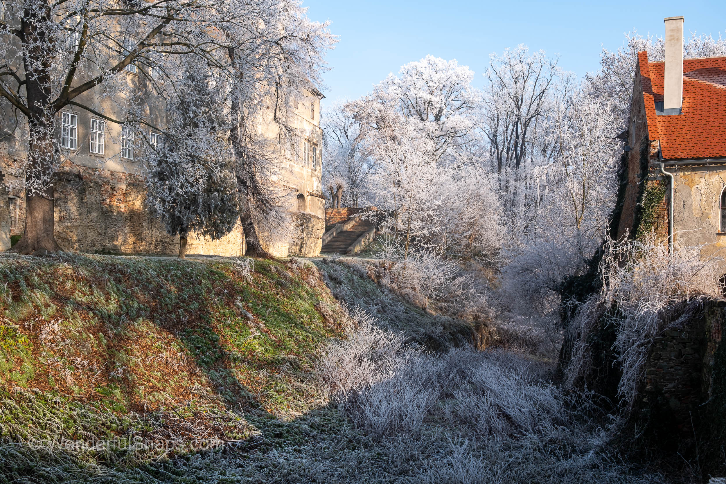 In the heart of Moravia stands Tovacov Castle, a proud sentinel of history surrounded by quiet elegance and timeless charm. Its tall tower rises above the gentle landscape, watching over the nearby ponds and meadows that turn into a serene winter tableau when frost settles across the land.