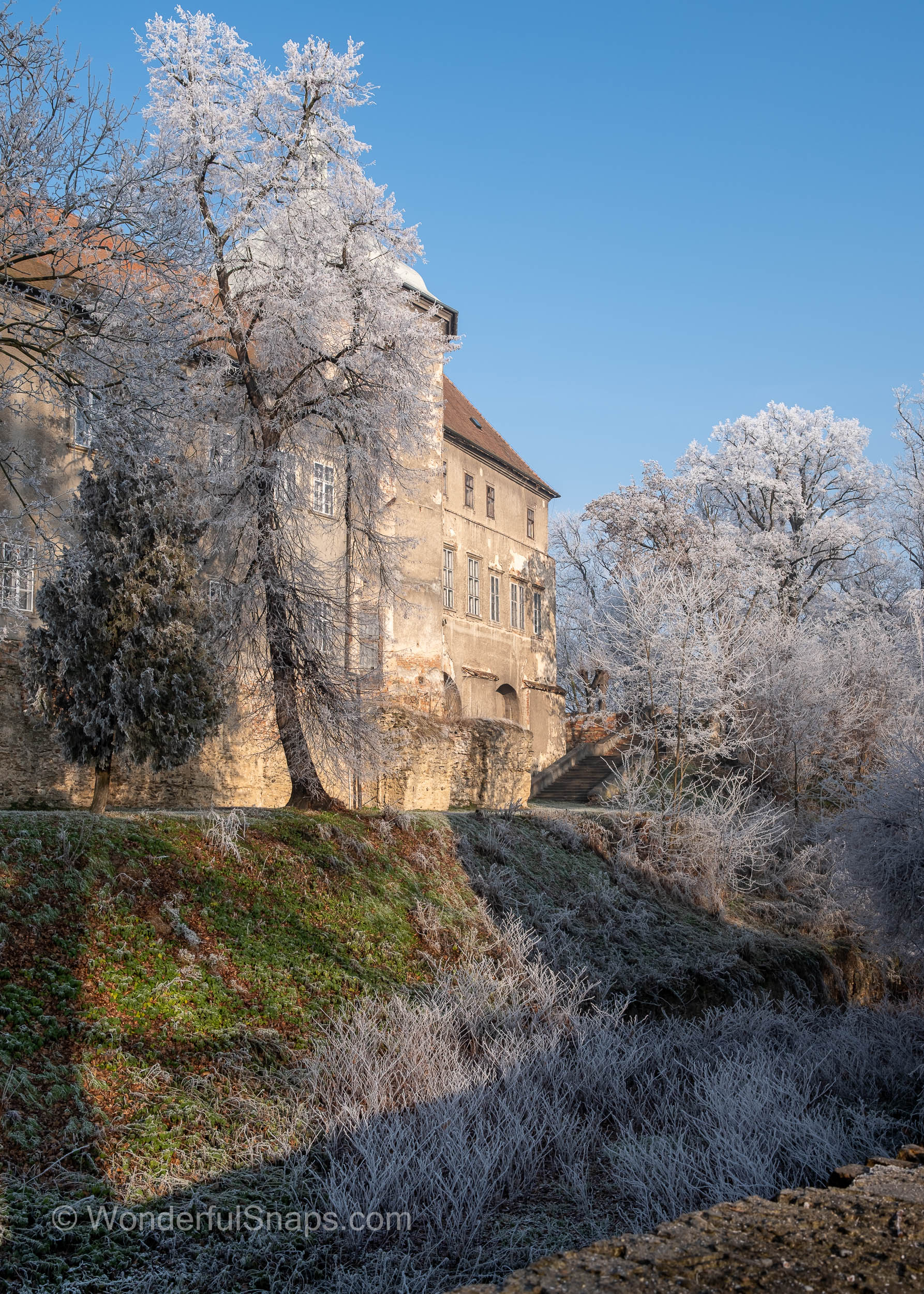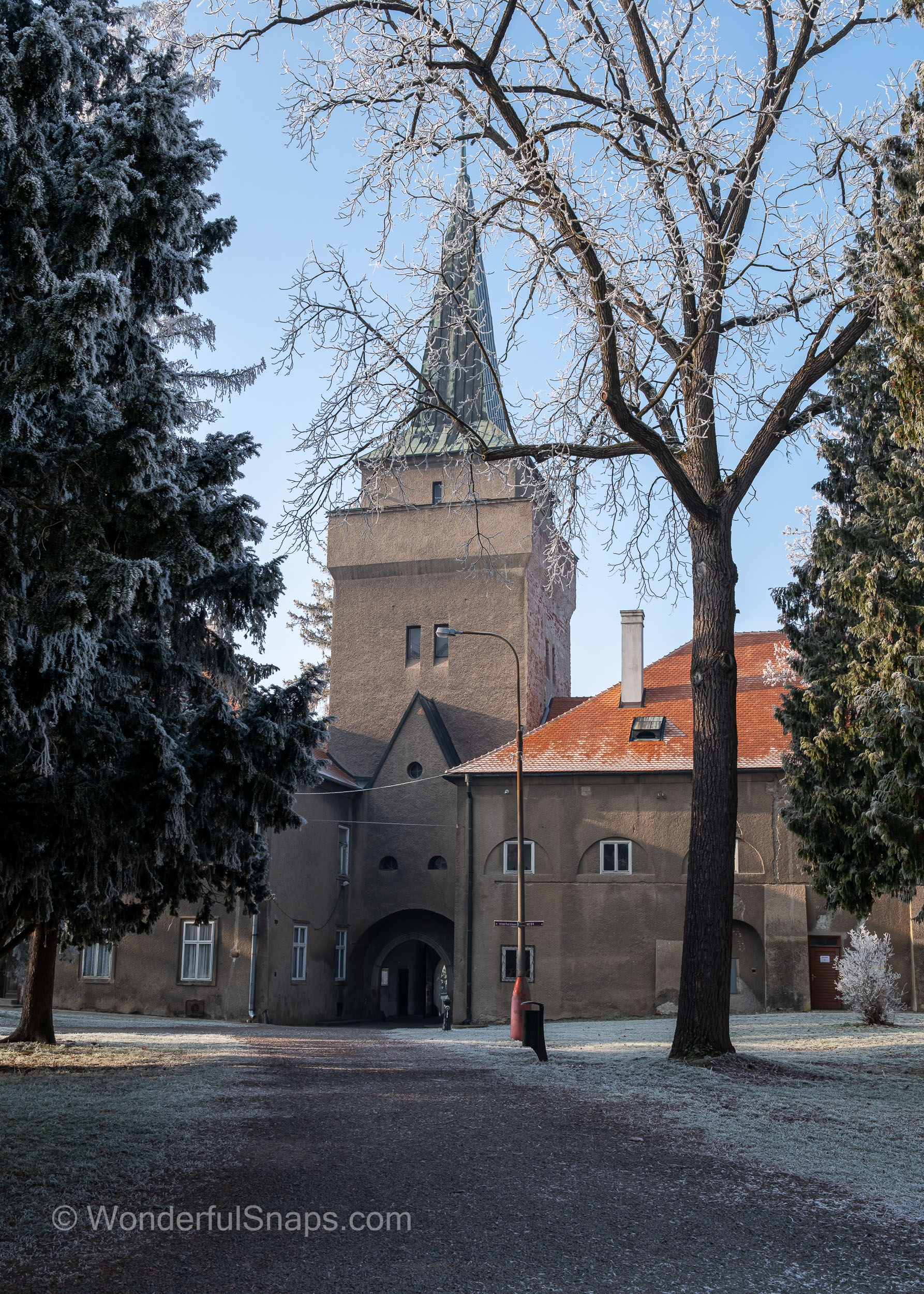 In the heart of Moravia stands Tovacov Castle, a proud sentinel of history surrounded by quiet elegance and timeless charm. Its tall tower rises above the gentle landscape, watching over the nearby ponds and meadows that turn into a serene winter tableau when frost settles across the land.