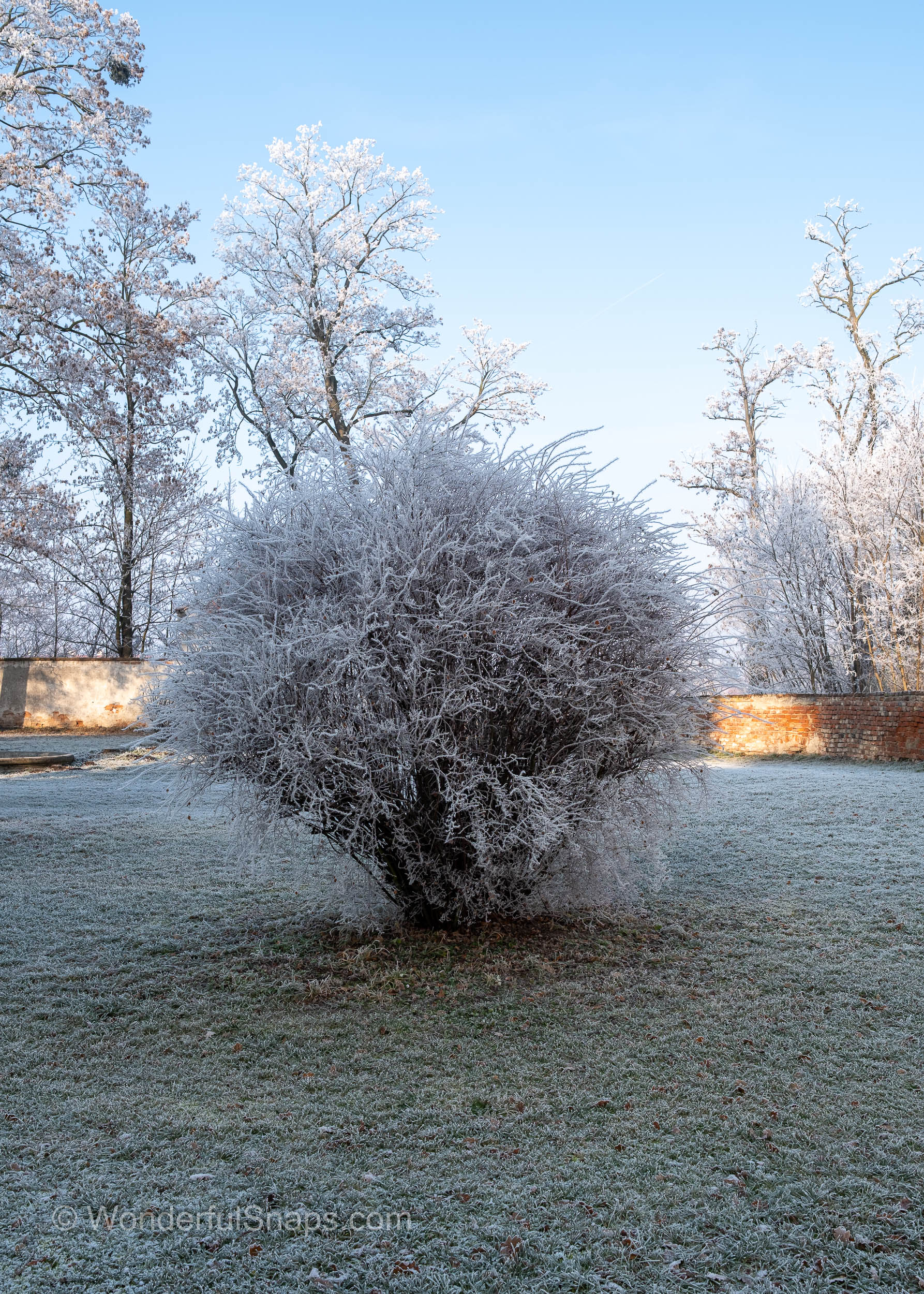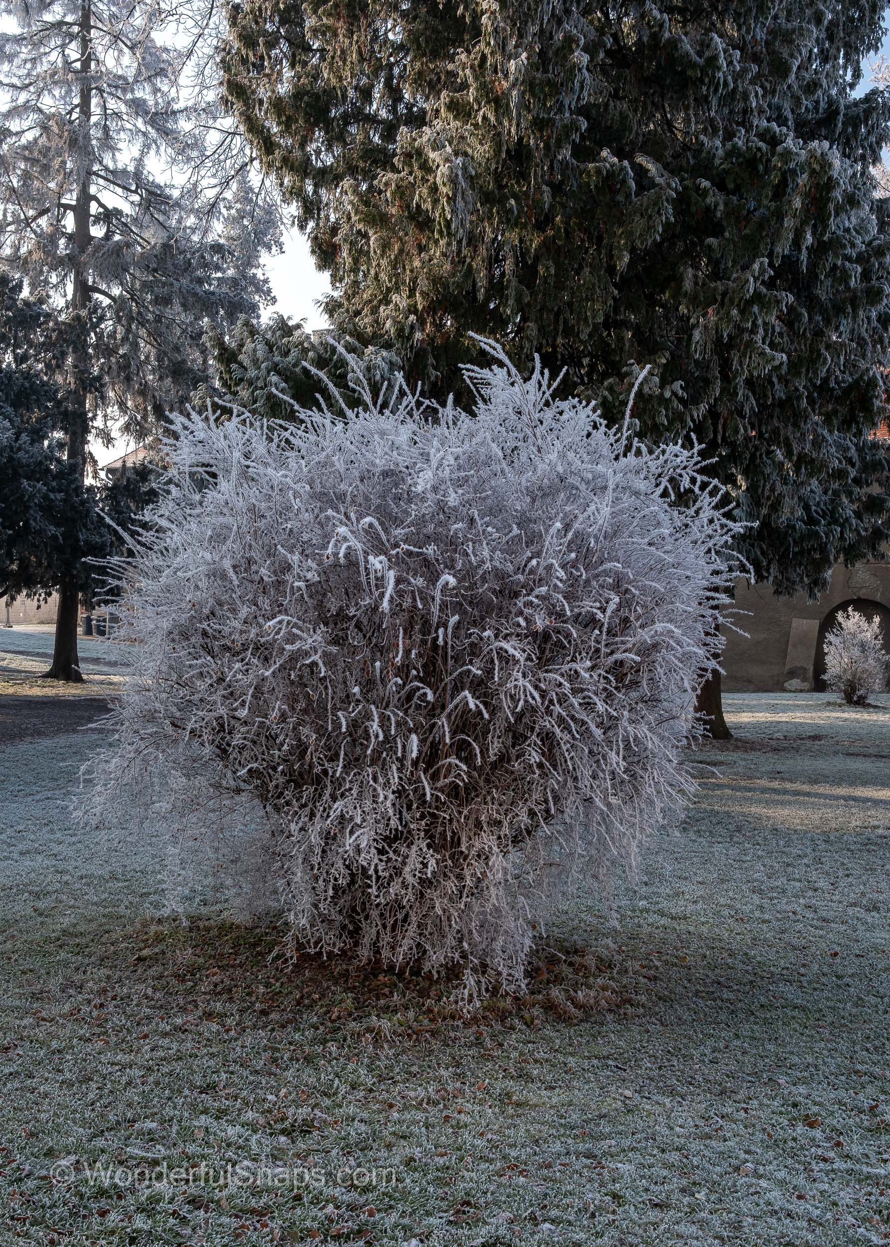 The sight of frozen trees in the castle’s backyard captures the spirit of the season — a moment when nature pauses in stillness and beauty. Every branch sparkles under a thin layer of ice, contrasting with the warm tones of the castle walls. The blend of architectural grace and natural purity creates an ethereal atmosphere that feels almost beyond time.