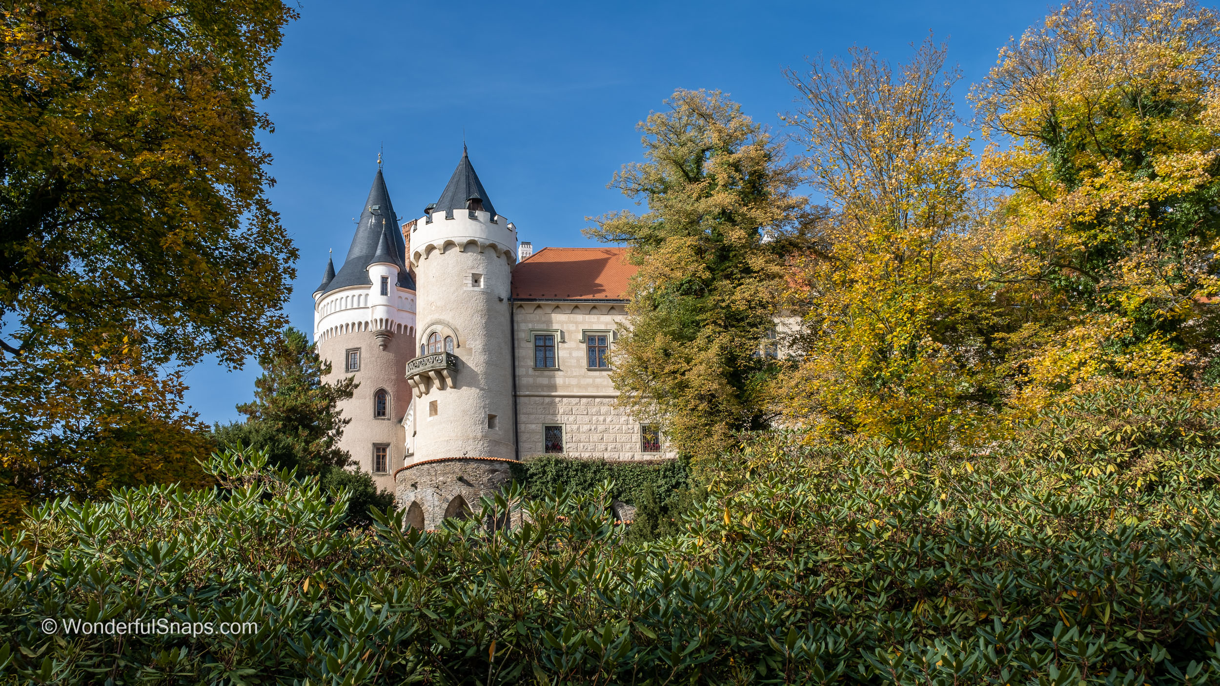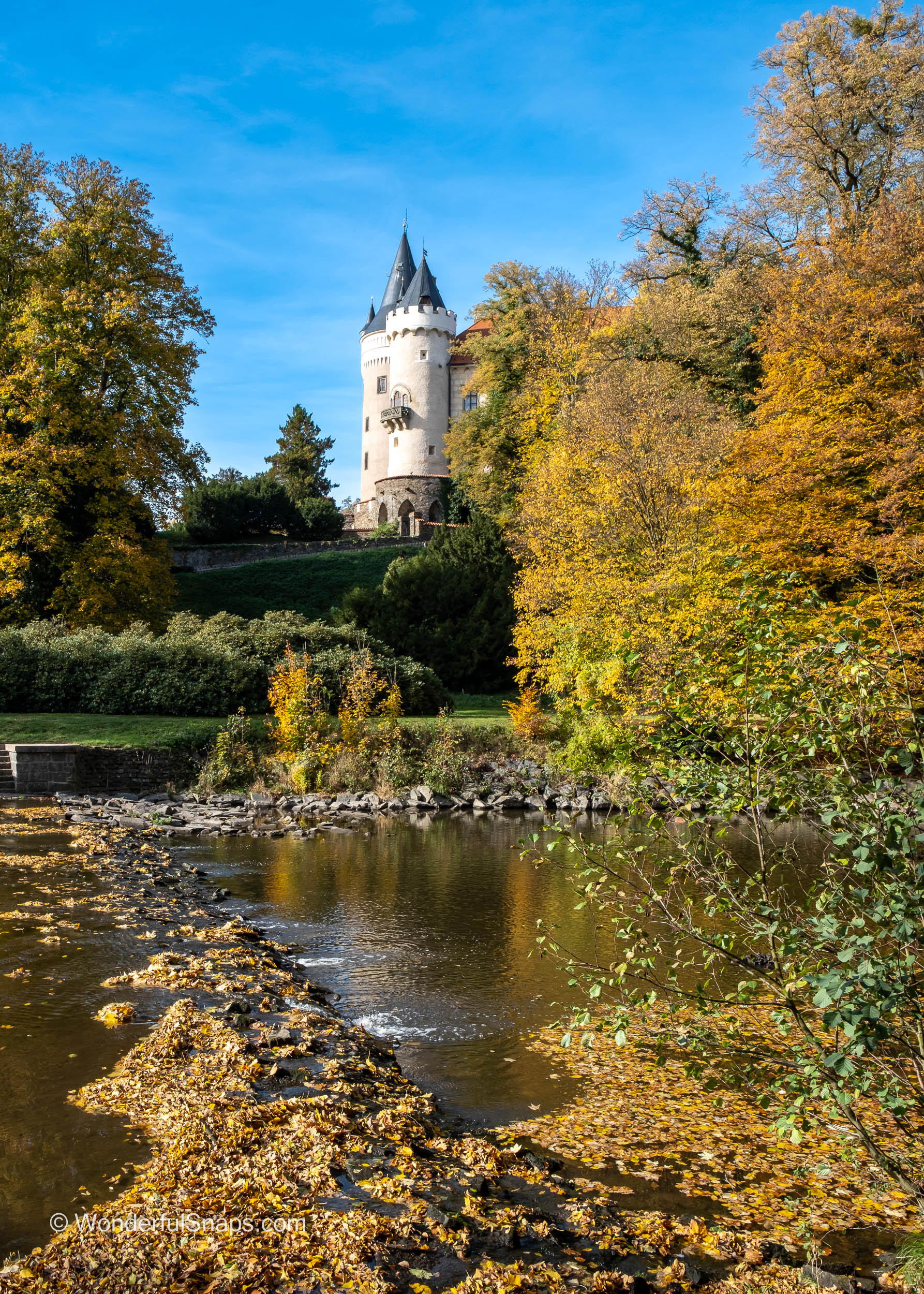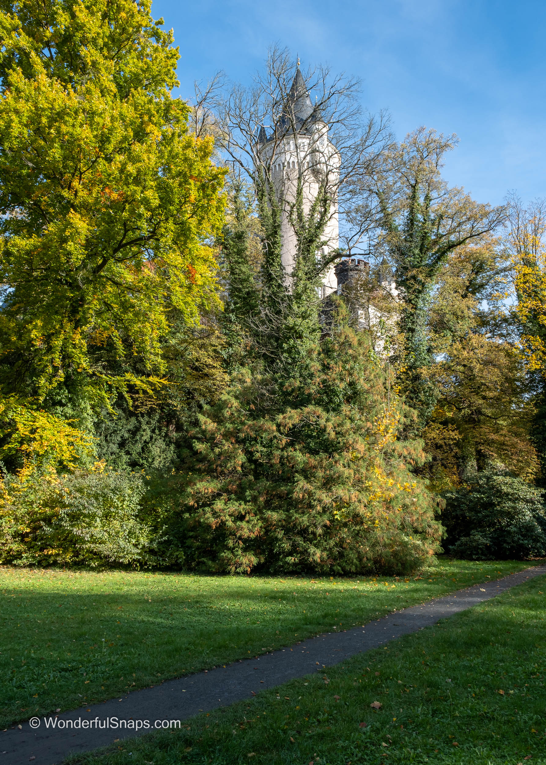 One of the highlights of my visit was the castle's charming park. Late autumn had painted the trees in a vibrant palette of reds, yellows, and oranges. As I wandered through the park, I couldn't resist capturing the beauty of the season. The trees gracefully shed their leaves, which fluttered to the ground, creating a colourful carpet. I was struck by the tranquillity of the setting, a stark contrast to the bustling modern world.